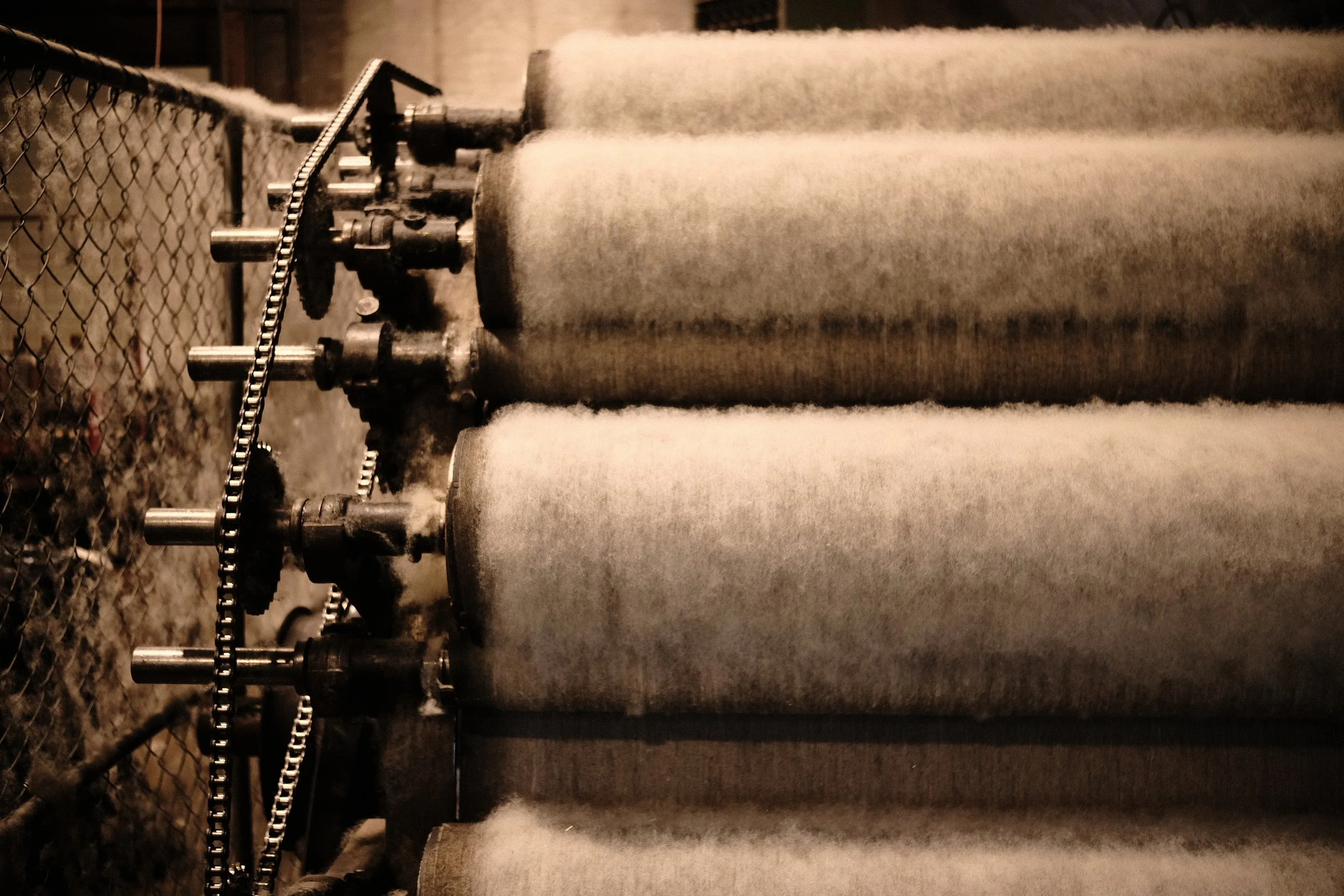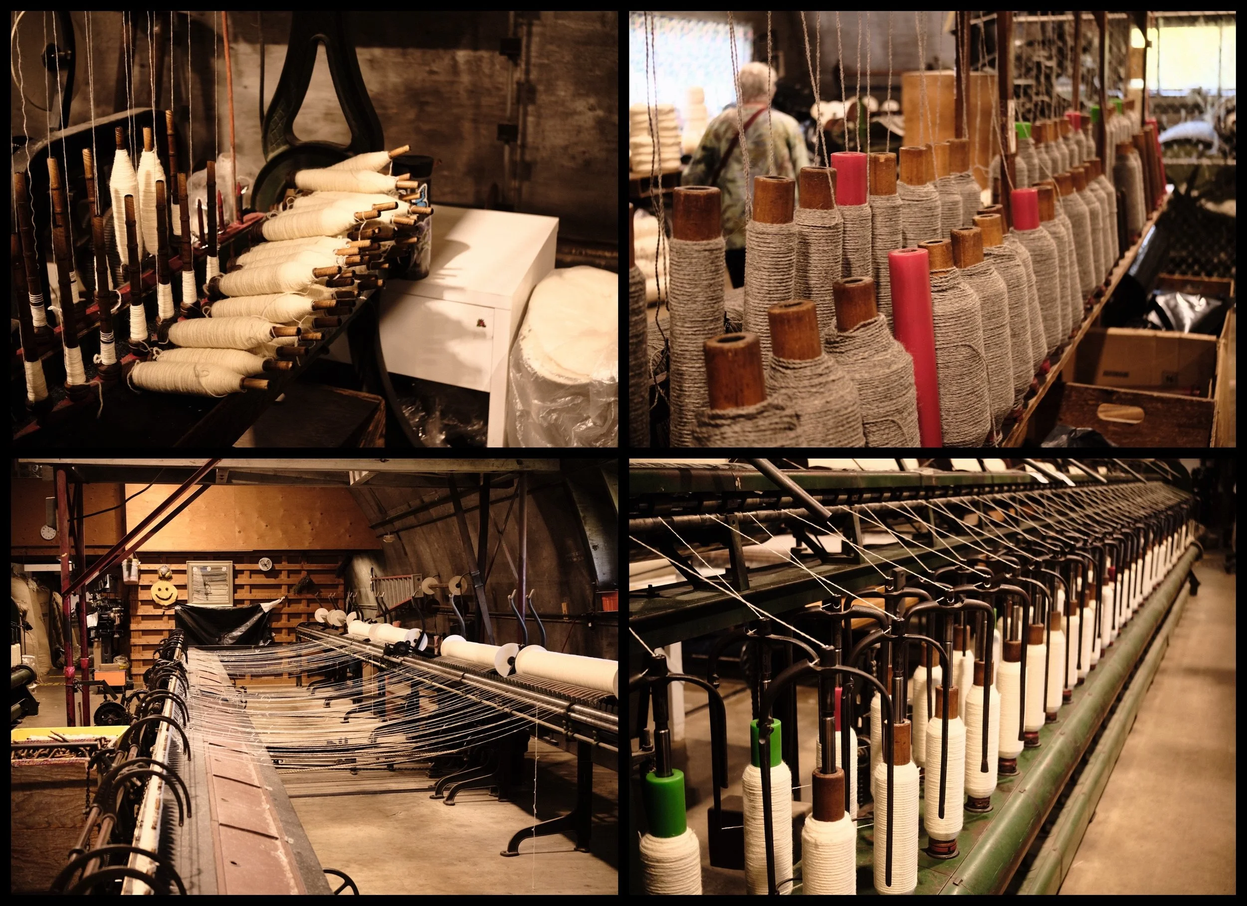 We stopped at Custom Woolen Mills on the way to Calgary, an active mill that processes thousands of pounds of wool into roving, yarn, socks, blankets and they even make their own wool filled, quilted sleeping bags. An amazing operation on the most beautiful old equipment.