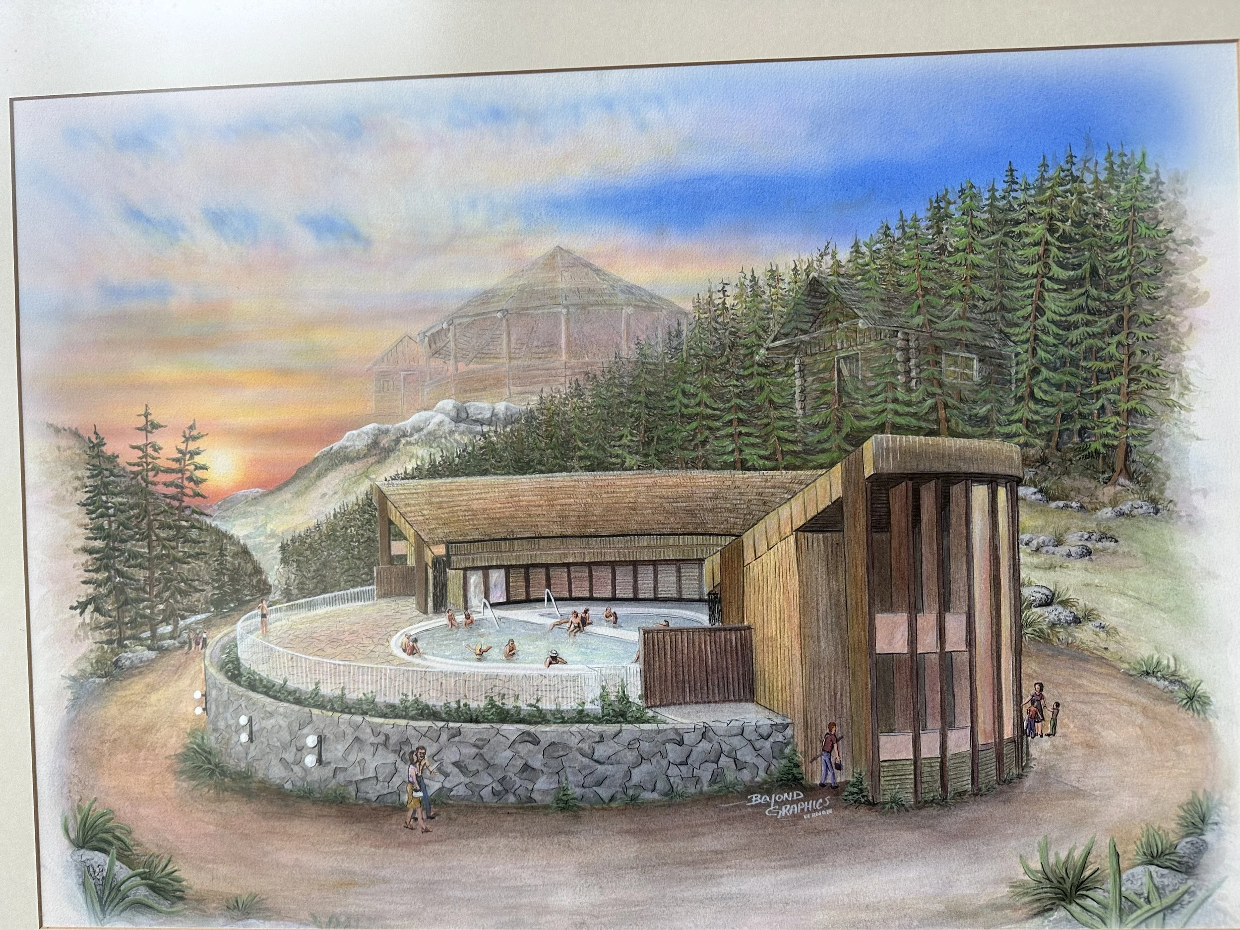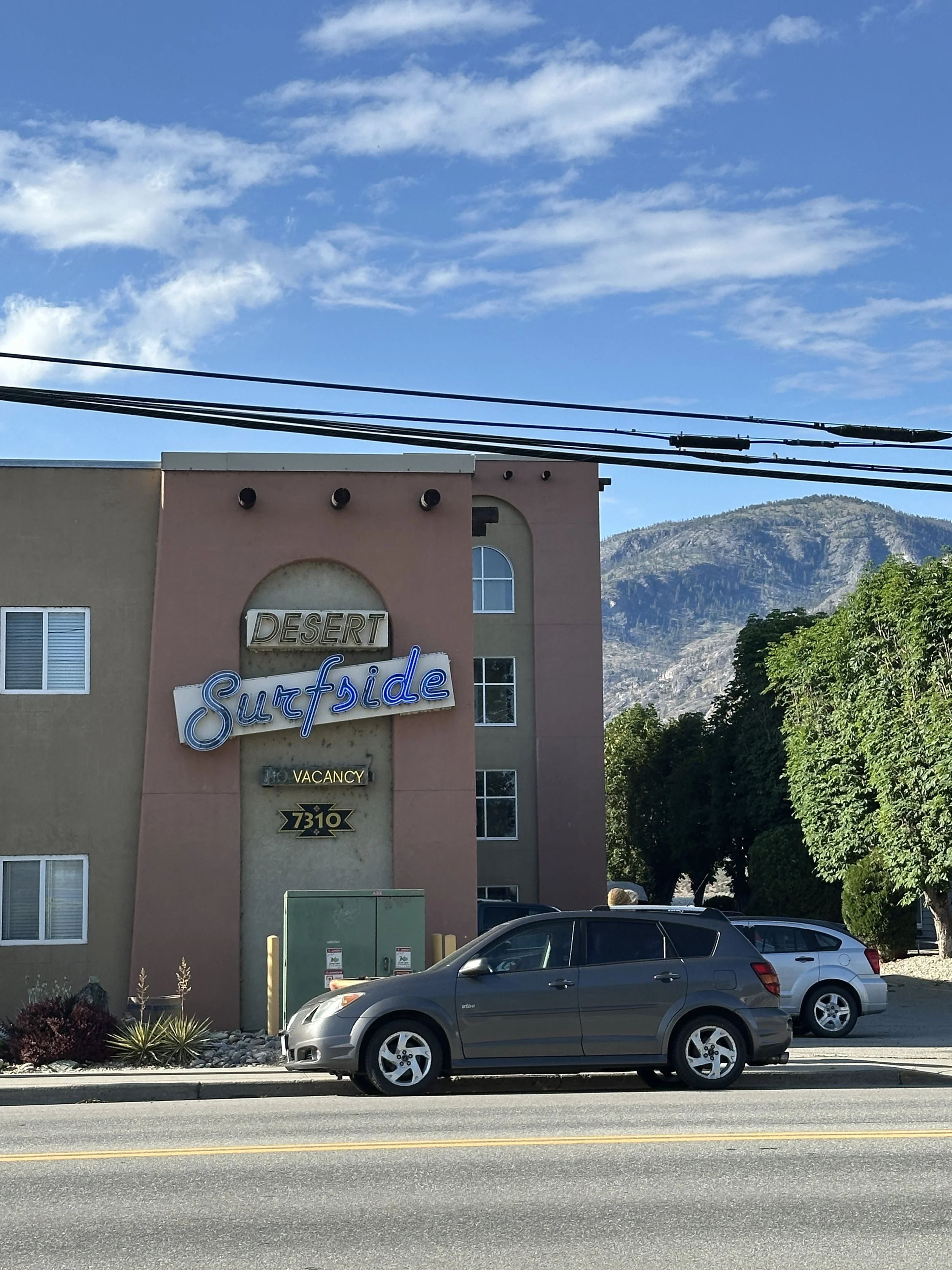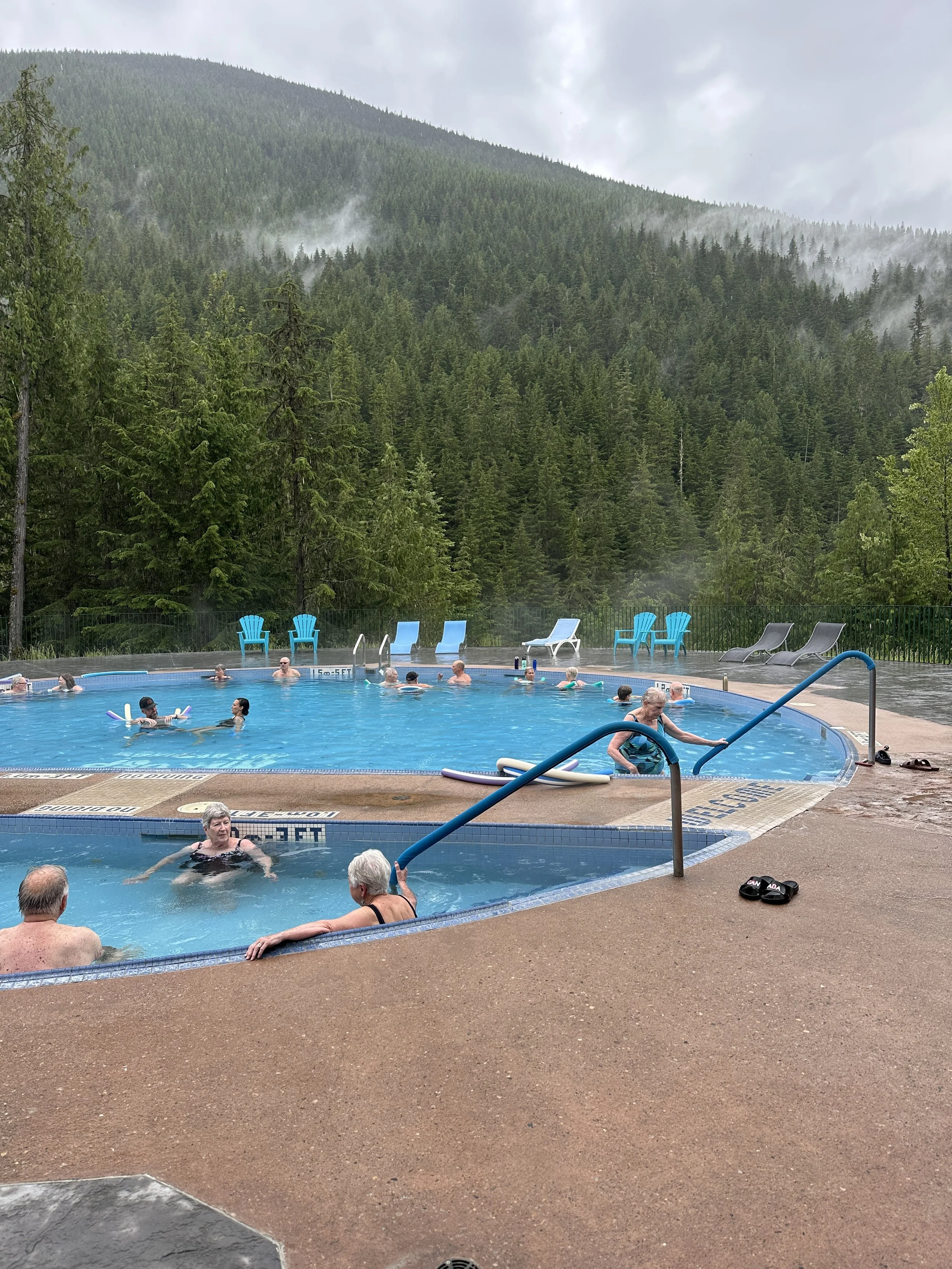 I took almost no photos this day, but we made it Nakusp, our hot springs destination. It was sooo nice to soak in the hot pools in the open hair while it was pouring rain. One pool was 104º, the other was 98º. This is a photo of a painting in the lobby. Mum’s mom remembers visiting back when it was just little pools made of stone.