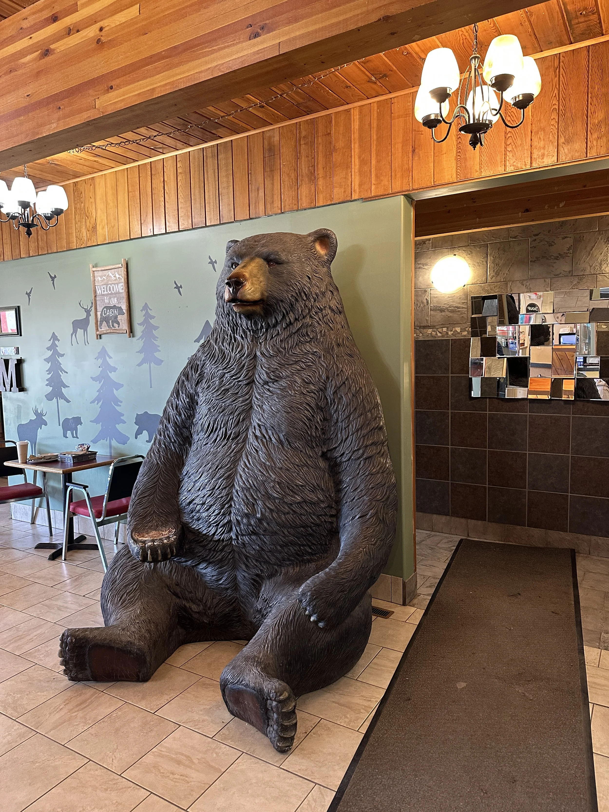 We stopped at a gas station in Smoky Lake, my mum claims to have not seen this humungous bear just outside the restrooms.