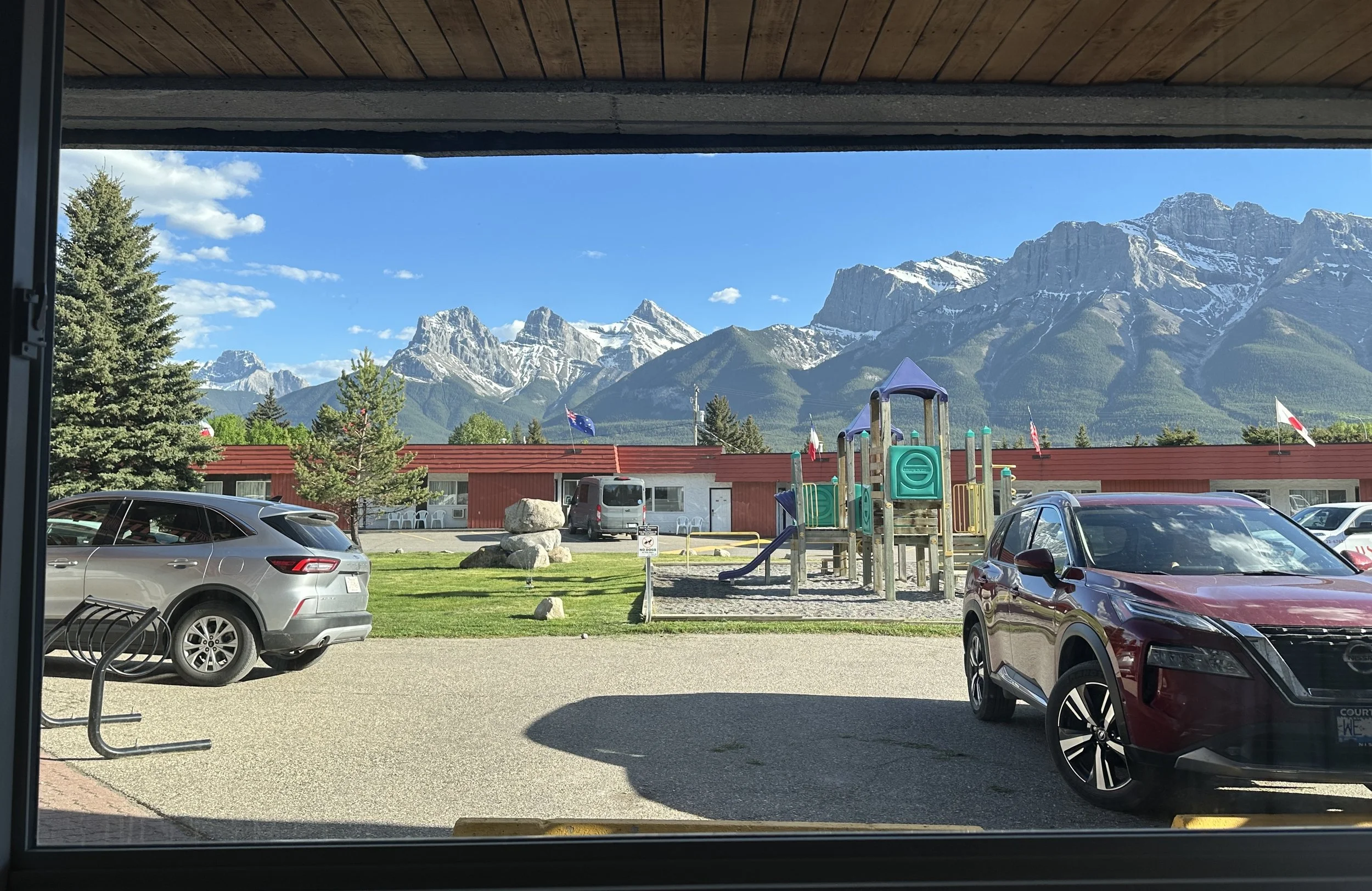 Our cheap-ass hotel in Canmore AB was pretty run down, but maaaannn, that view.