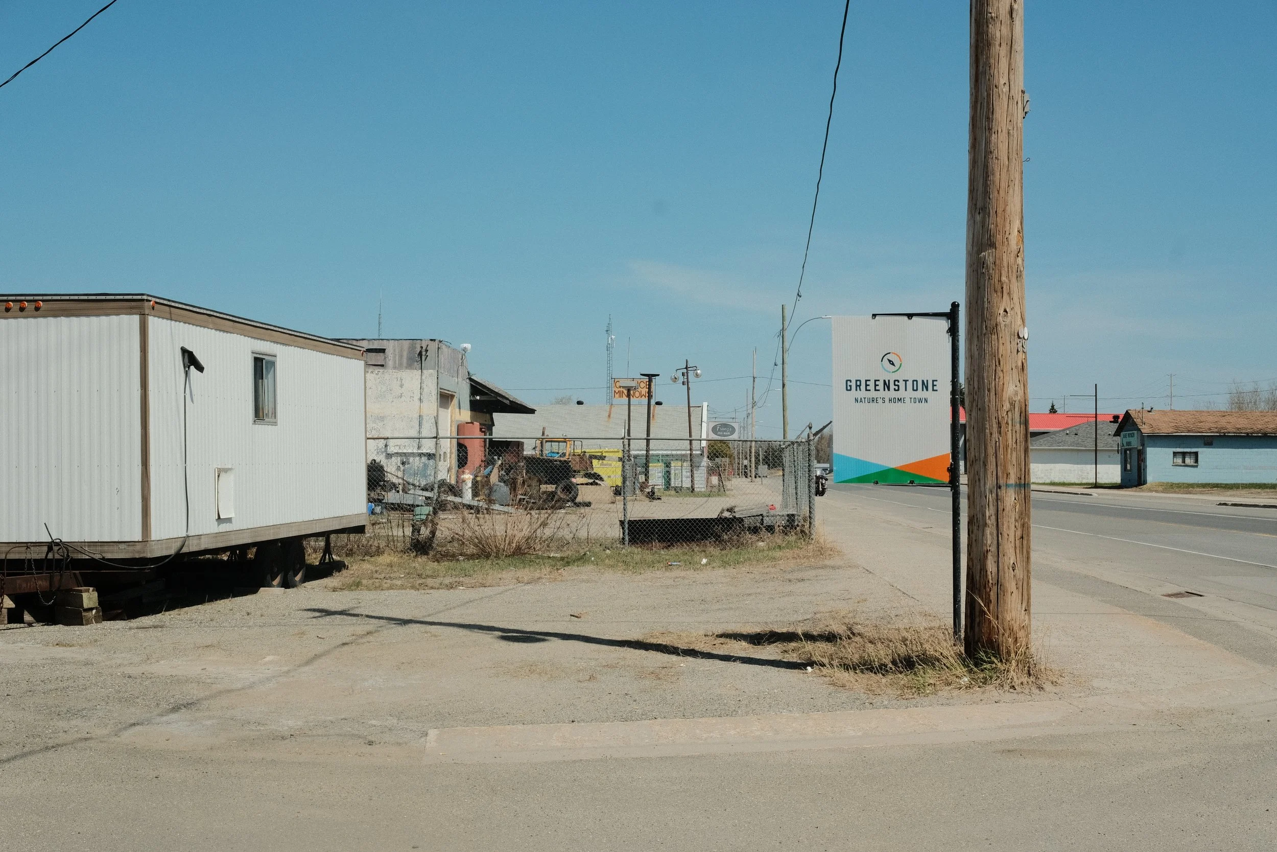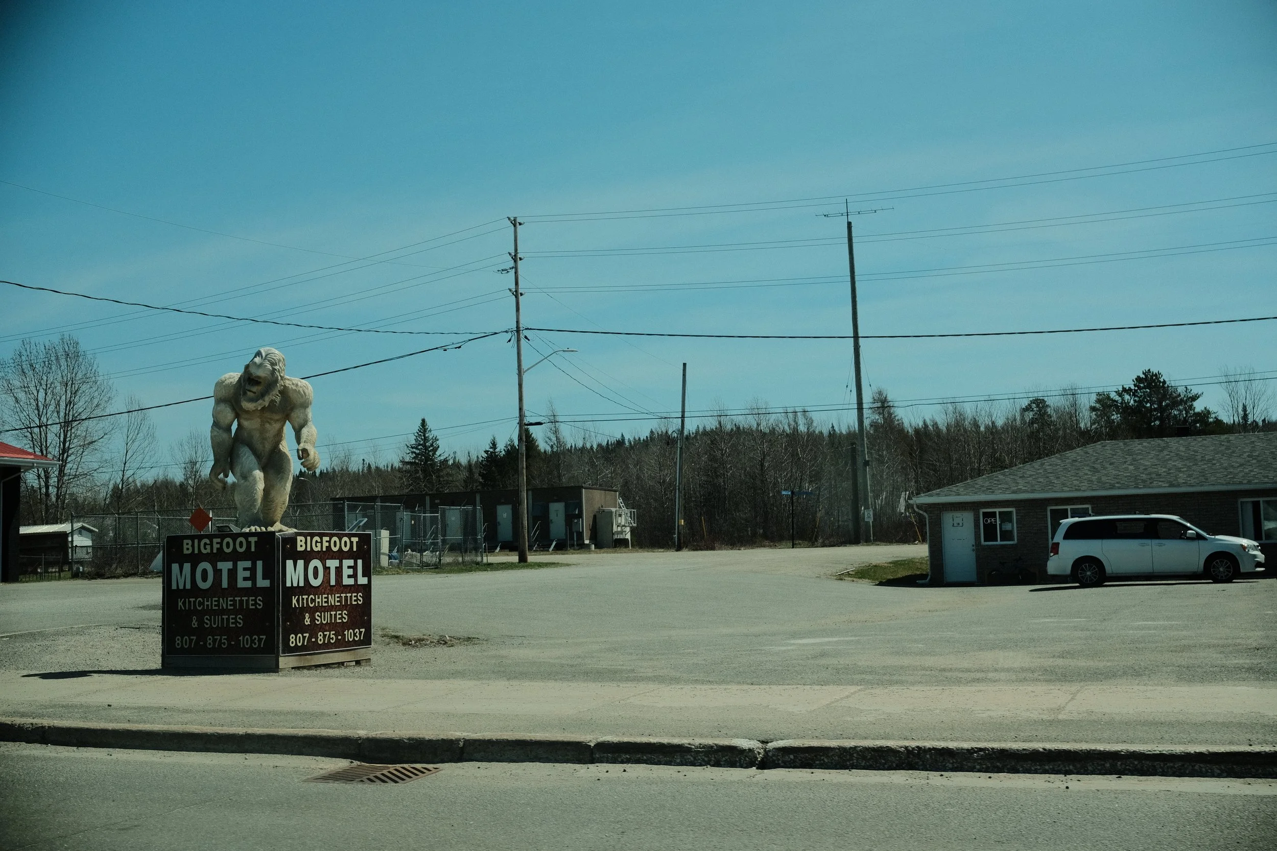 Disappointingly I didn’t see a single beard in Beardmore, I saw a small plywood sign with GAS scrawled on it, I pulled to see a very old pump with lights on, covered in masking tape and no price. A kind lady poked her head into the hot, dusty parking lot to let me know there’s no gas. She should probably take down her super effective sign. (haha, it was about 12 square inches) I wasn’t worried, I was still at 3/4 tank, I’ve been keeping it full the whole way knowing this would happen eventually. On the Beardmore town website, a short list of things to do included the usual camping/fishing/hunting and a visit to the ‘big snowman with sunglasses’ in the center of town. Honestly, I didn’t take a pic of it, it wasn’t even that cute, opting instead to take a photo of the awesome Sasquatch and a sign that lays claim to many of the towns around here, by announcing that it’s a Greenstone community, the ubiquitous mining company.