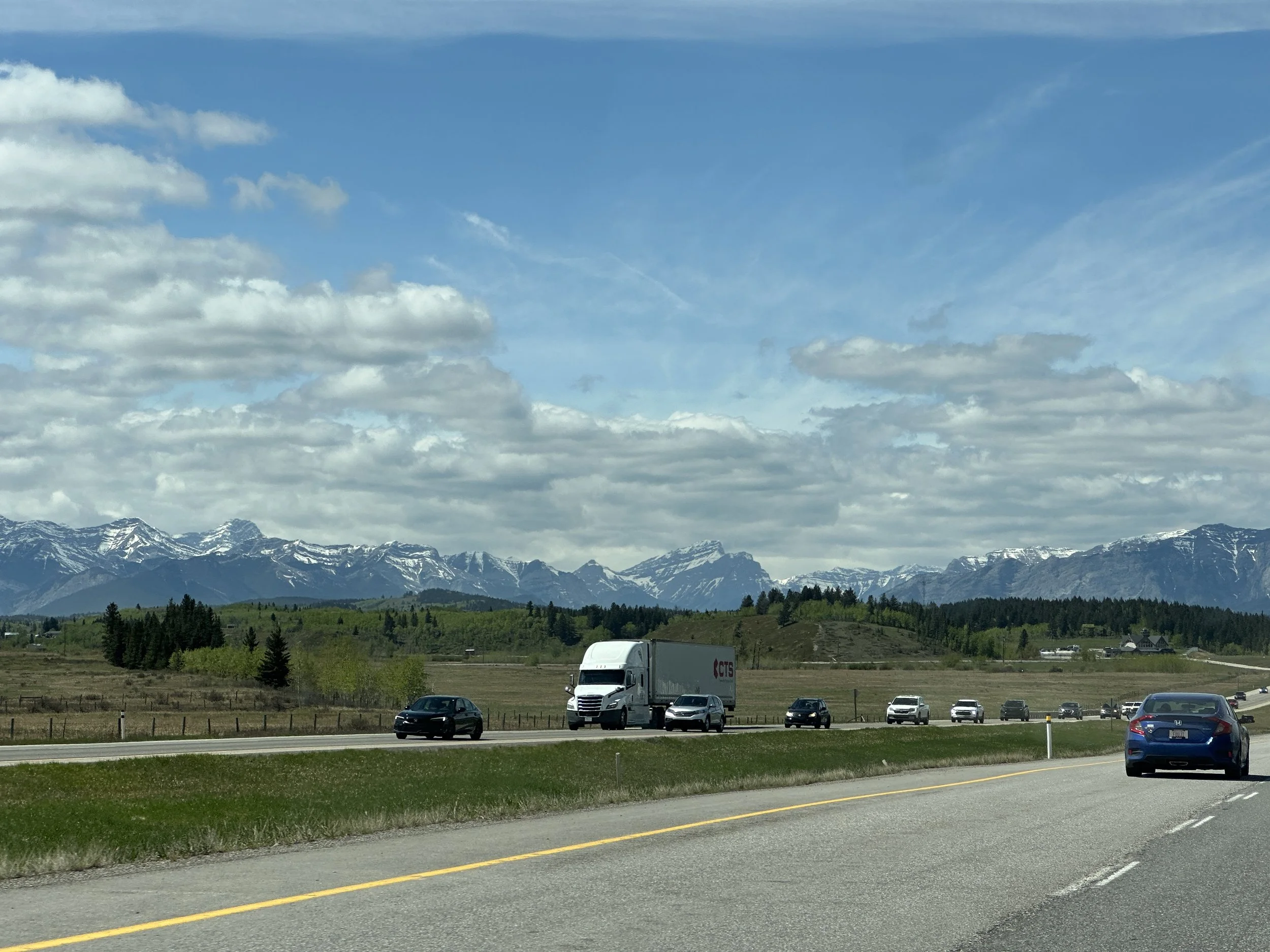 The Canadian Rockies as seen from outside of Calgary/Canmore. I was heading up and over Route 1.