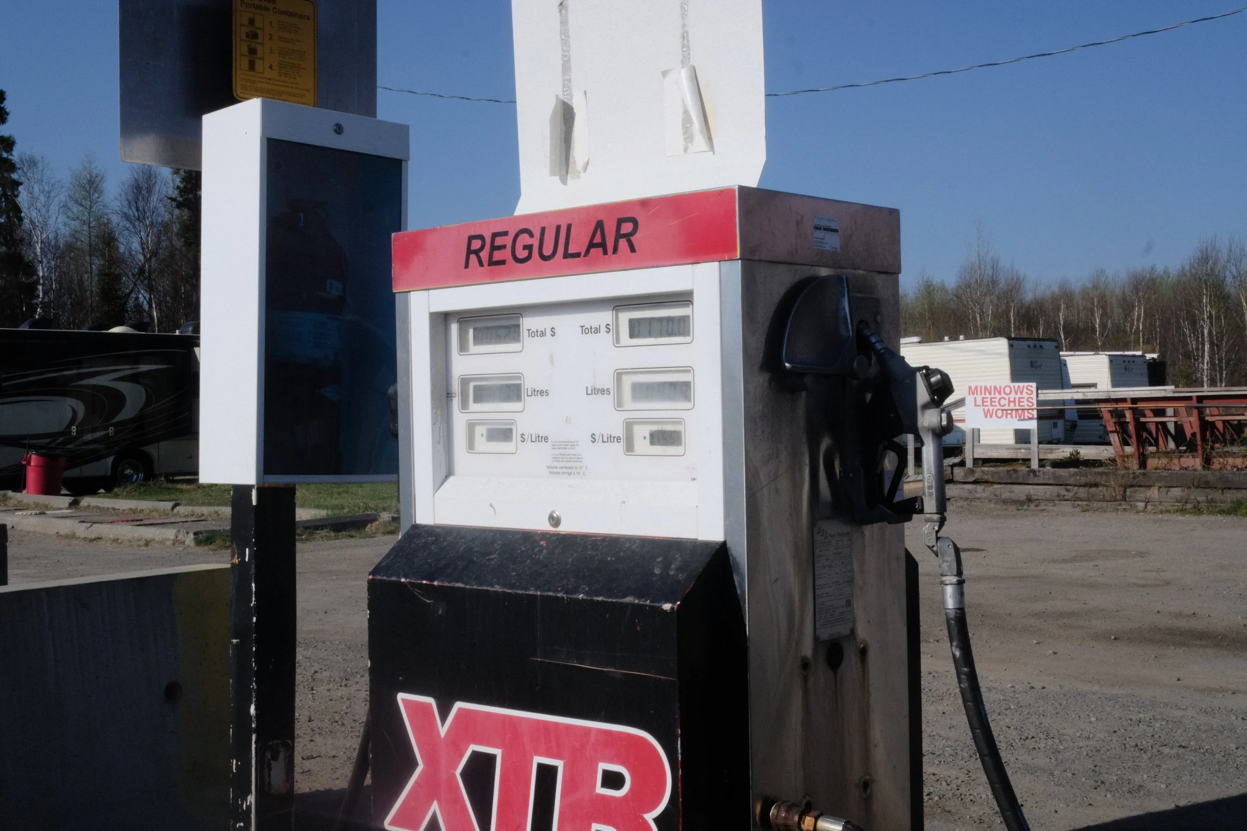Old fashioned honor system gas pump. (also for sale: minnows, leeches and worms) :)