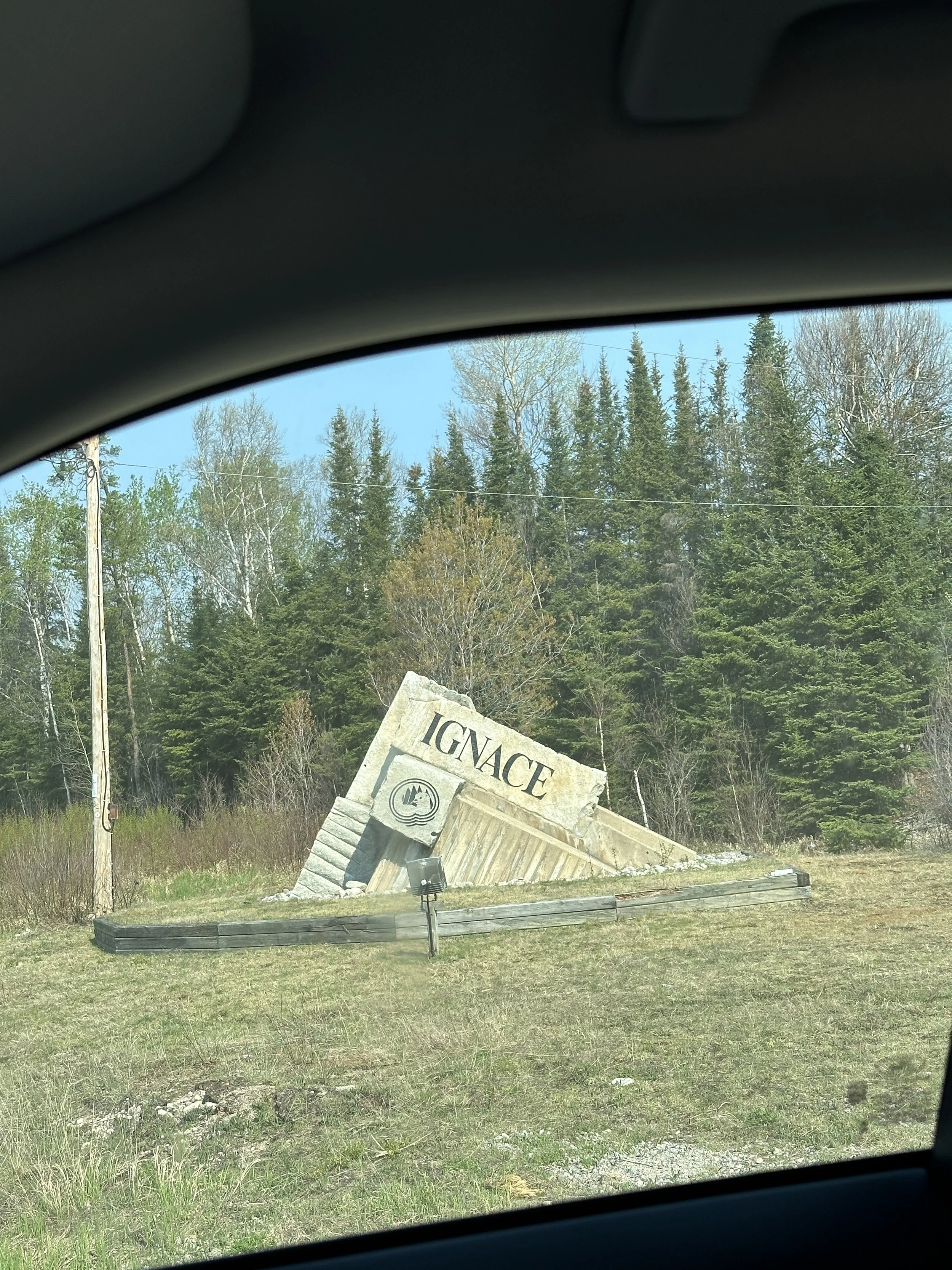 Next stop was at a little scenic pullover in Ignace, ON. The view was ok, but I met an older gentleman there who was walking his dog. He lived in Ignace. Noticing my license plate, he said I was the first person he’d ever met from New Hampshire, it was the usual ‘where ya headed’ stuff, I told him all the way west to the island, he said, “I went to BC a few years bag to visit my daughter, NEVER AGAIN, I couldn’t handle the traffic. It was bumper to bumper everywhere, no thank you”. I asked what it’s like living in Ignace and he replied simply, “Good, I’m getting ready to go fishing all summer. I know, rough life.” He also mentioned that he was going to retire in Arizona but then we (as in the US) went ahead and re-elected a lunatic. “There’s too many guns down there, don’t get me wrong, I have nothing against guns, I own several, I’m just just not ok with people carrying them around all the time.” Same, friend…. When I told him I’d taken the northerly trans canada route he said with a laugh, “Ohhhh, you took the boring way!” Ha. I mentioned that I had given up on the dream of going to Pickle Lake, ON (most northerly maintained road in ON), he replied, “yeah, you’ve probably seen enough trees”. That sealed the deal, I love trees, but no Pickle Lake for me. He had one last piece of advice before I left, “I like to drive 105 on the road (speed limit is 90kph), that way I’m not always passing people and nobody is tailgating me, it’s a good cruising speed”.