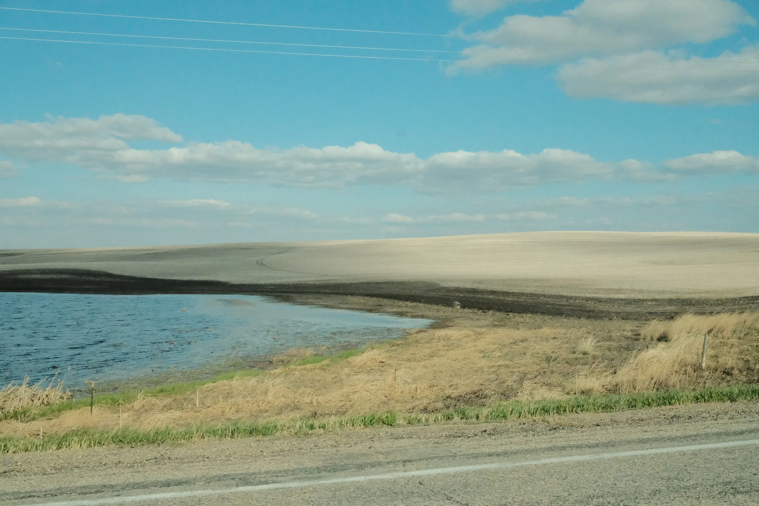 soft rolling hills of silvery gold. These little ponds are full of wildlife. outside of Saskatoon, SK.